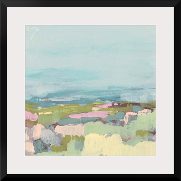 <p>Contemporary abstract landscape in pastel hues.</p>