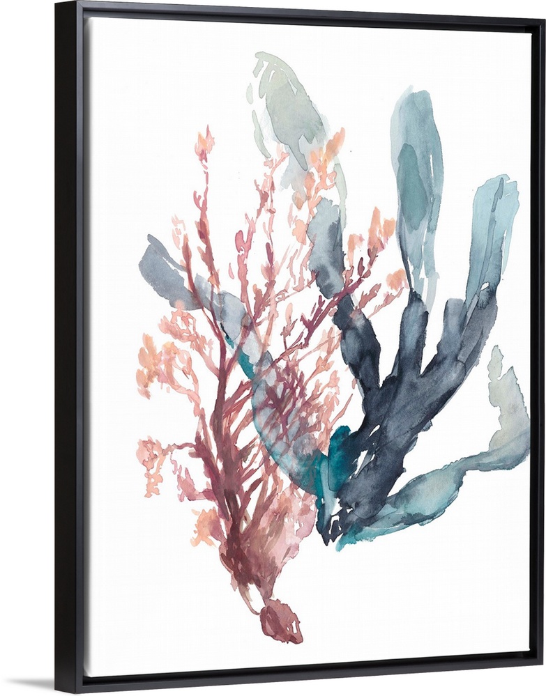 Art Coastal Bathroom Art Blue Wall Art Color Palettes Millennial Pink Peach and Indigo Decorative Art Florals Marine Plants Jennifer Goldberger Painting Watercolor