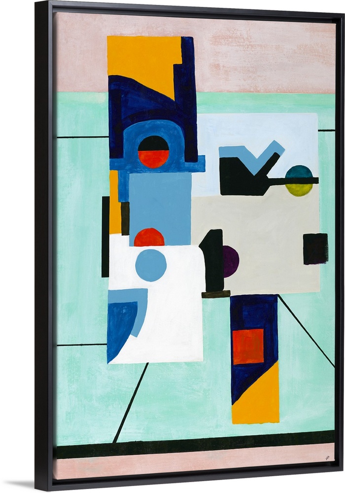 <p>Geometric abstract with shapes placed together in the middle to create a larger shape in playful colors.</p>