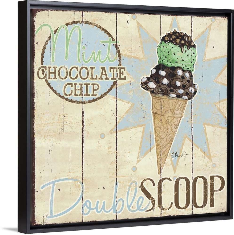 <p>A vintage ice cream shop sign featuring a double scoop on a cone.</p>