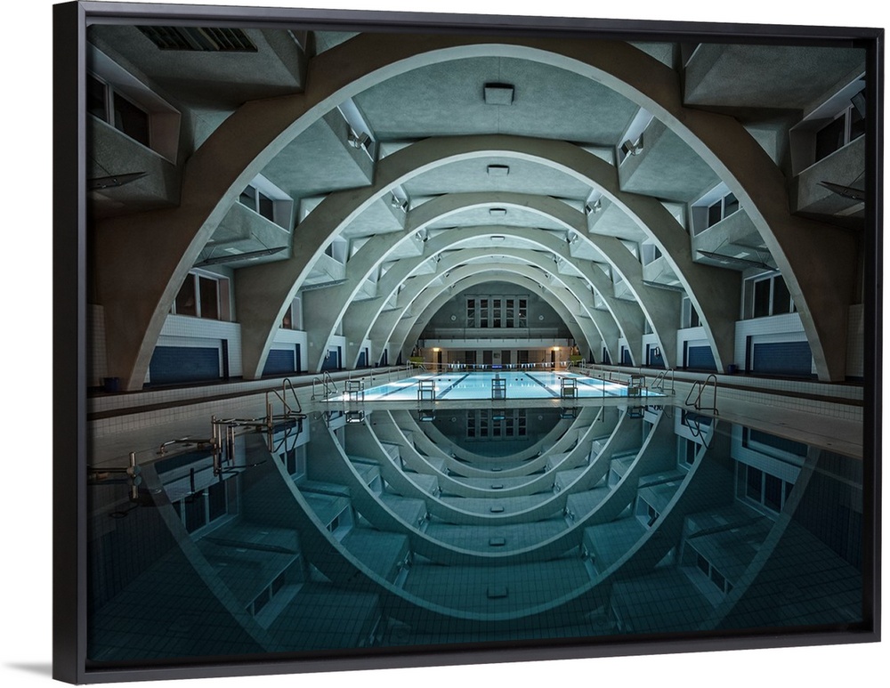<p>An indoor pool with elaborate cement arches, Germany.</p>