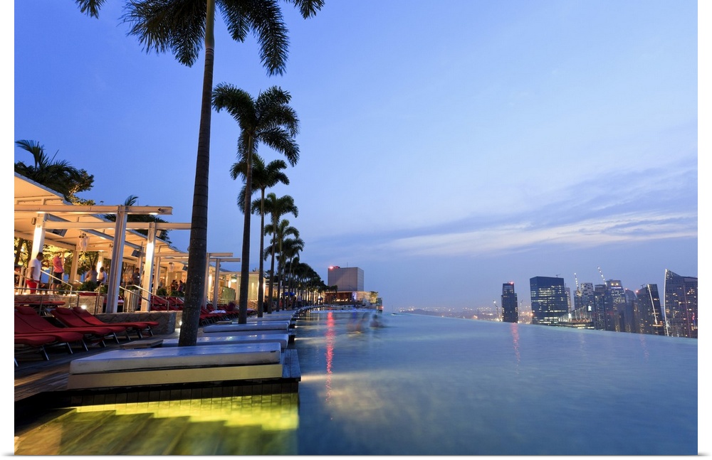 <p>Singapore, swimmingpool and Singapore Skyline on the 57th floor of Marina Bay Sands Resort</p>