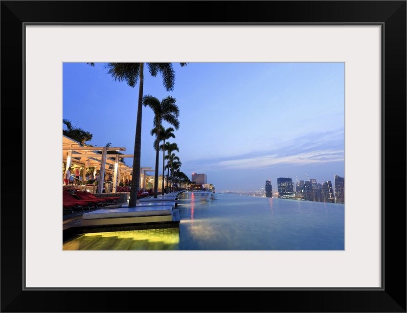 <p>Singapore, swimmingpool and Singapore Skyline on the 57th floor of Marina Bay Sands Resort</p>