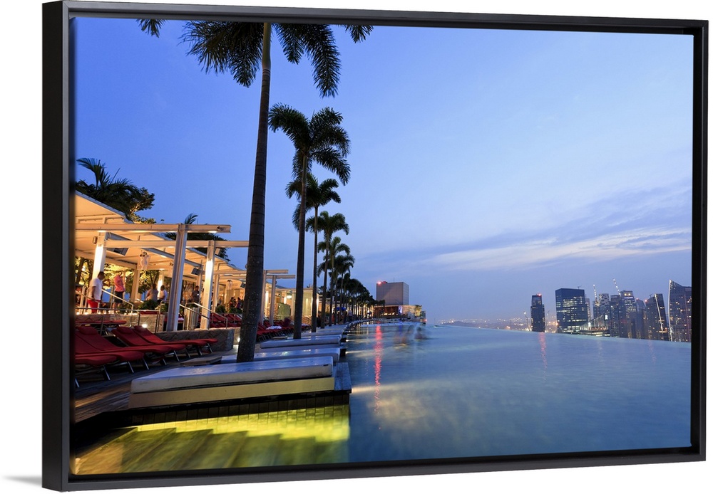 <p>Singapore, swimmingpool and Singapore Skyline on the 57th floor of Marina Bay Sands Resort</p>