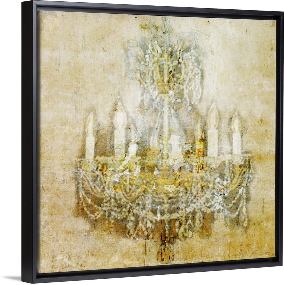 <p>Contemporary artwork of a vintage looking chandelier, on a stressed and rustic looking background.</p>