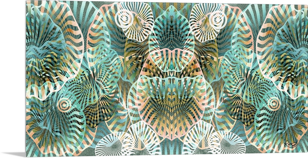 <p>Contemporary digital artwork of striped organic shapes in pale orange and sea green.</p>