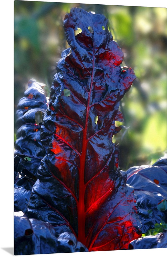 <p>Swiss chard (Beta vulgaris cicla 'Bull's Blood') in a garden. This vegetable is often grown in cottage gardens for its attractive red foliage.</p>
