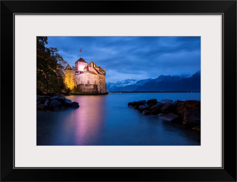 <p>Switzerland, Vaud, Lake Geneva, Alps, Lake Geneva, Lac Leman, Montreux, Chateau de Chillon.</p>