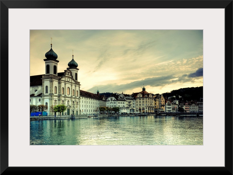 <p>Switzerland, Lucern (Luzern), Jesuit Church and River Reuss</p>