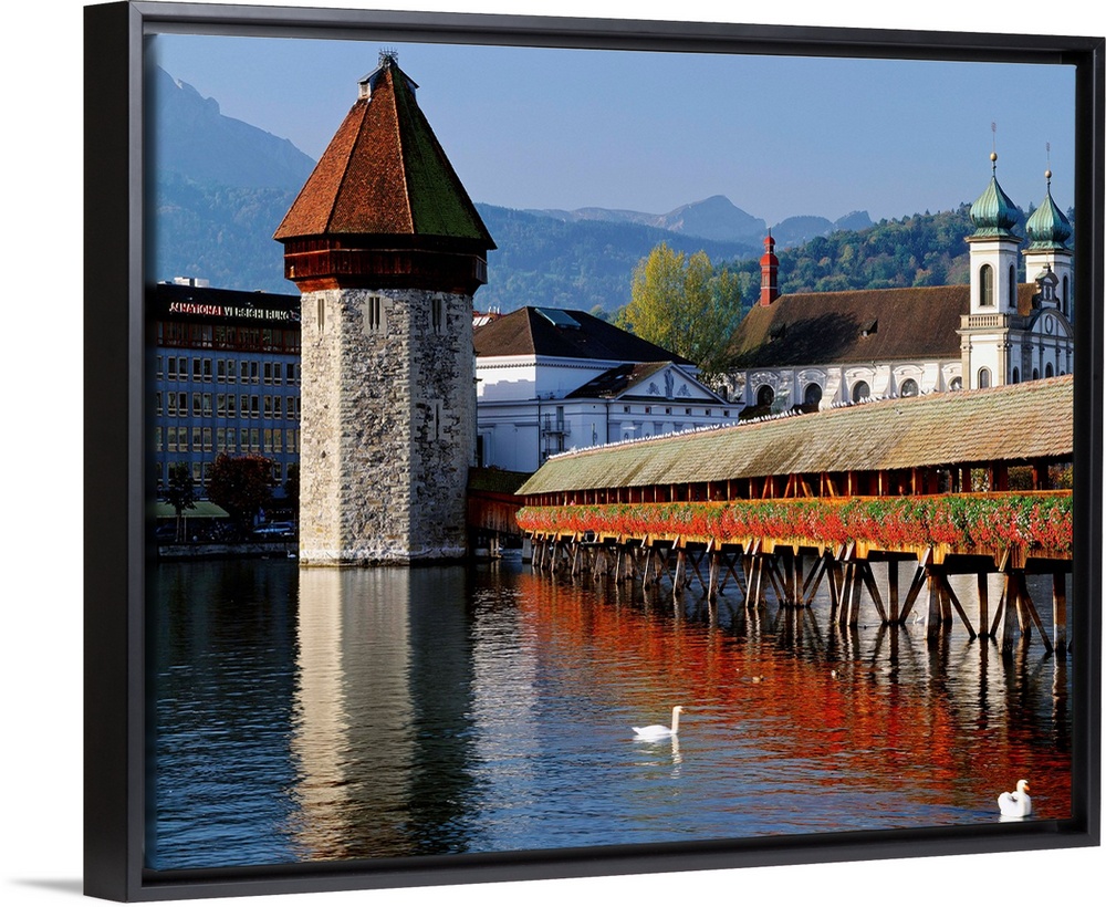<p>Switzerland, Luzern, Luzern, Lucerne, Kapellbr.cke (Chapel Bridge), the covered wooden bridge and octagonal water tower over the river Reuss</p>