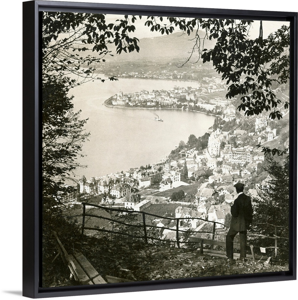 <p>Switzerland, Montreux. 'Charming Montreaux On the Shores Of Lovely Lake Geneva, Switzerland.' Stereograph, C1908.</p>