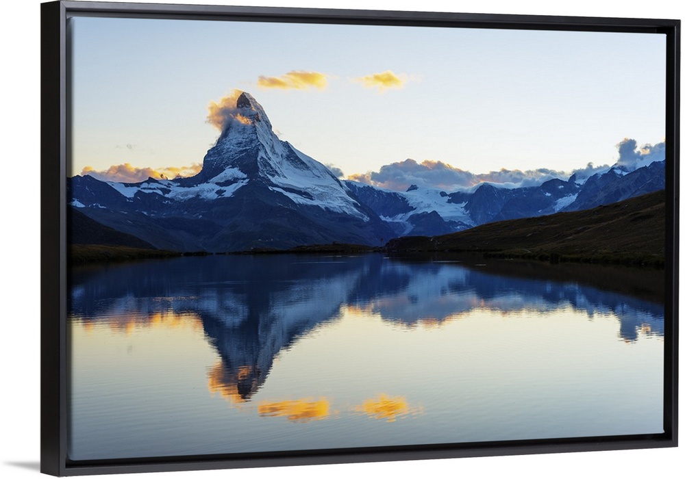 <p>Europe, Switzerland, Valais, Zermatt, Matterhorn (4478m), Stellisee lake.</p>