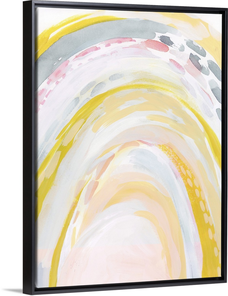 <p>Contemporary abstract in pastel hues and bright yellow-greens.</p>