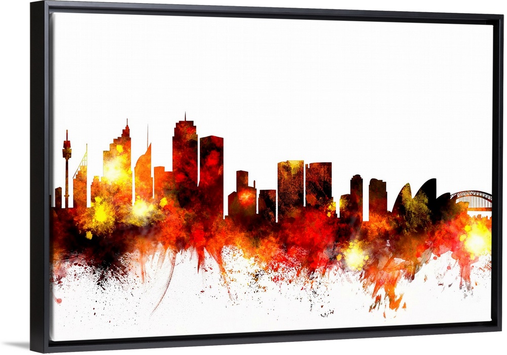<p>Contemporary piece of artwork of the Sydney skyline made of colorful paint splashes.</p>