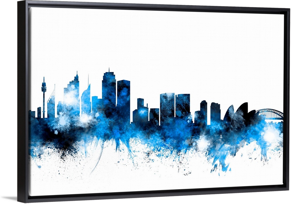 <p>Contemporary piece of artwork of the Sydney skyline made of colorful paint splashes.</p>