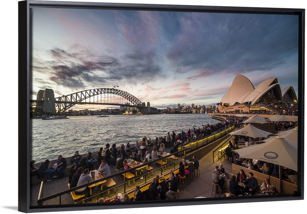<p>Sydney Harbour with the Harbour Bridge and Opera House after sunset, Sydney, New South Wales, Australia</p>