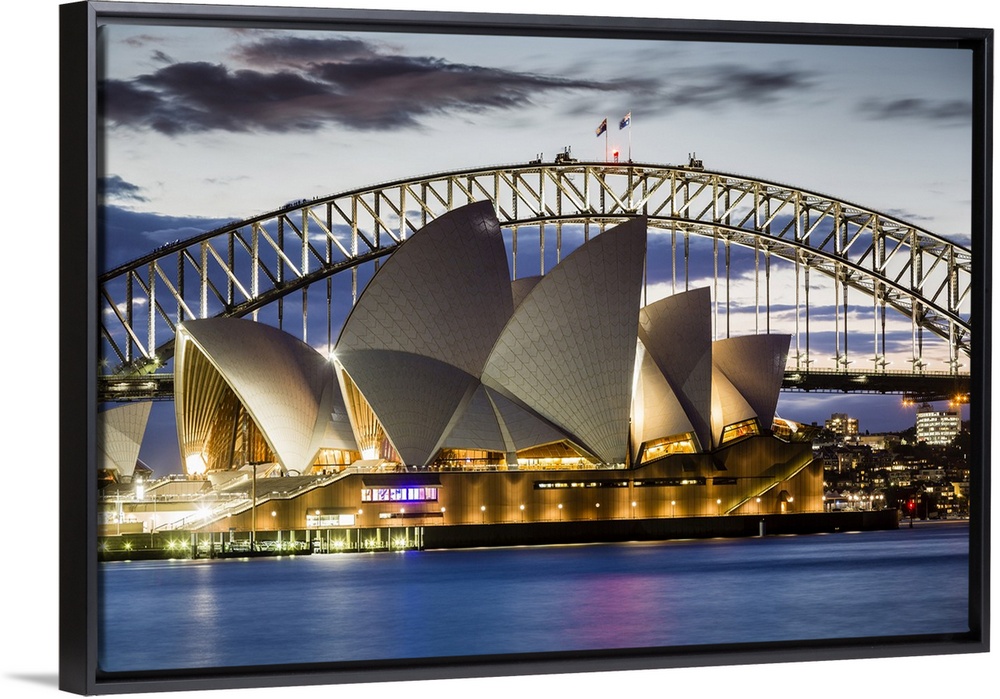 <p>Sydney Opera House and Sydney Harbour Bridge at dusk, Sydney, New South Wales, Australia.</p>