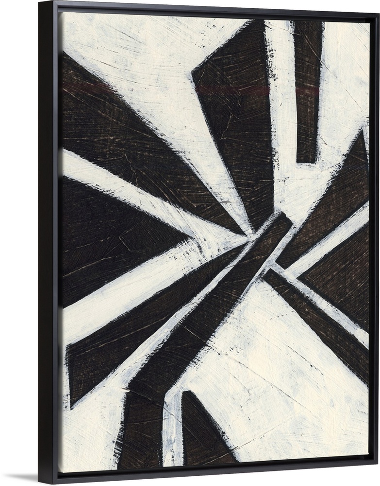 <p>Contemporary mid-century inspired abstract painting using bold black strokes against a weathered neutral background.</p>