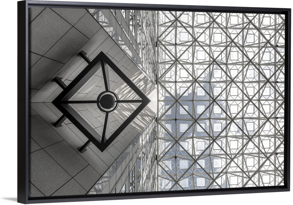 <p>Looking up at an abstract architectural framework design.</p>