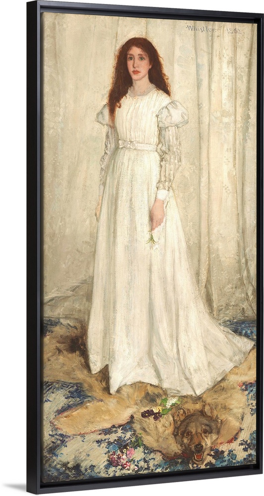 <p>Symphony in White, No. 1: The White Girl, by James McNeill Whistler, 1862, American painting, oil on canvas. This painting anticipates Whistler's 'tonalism', with its large area of white dress against white backdrop. The nuanced white hues dominate the pa</p>