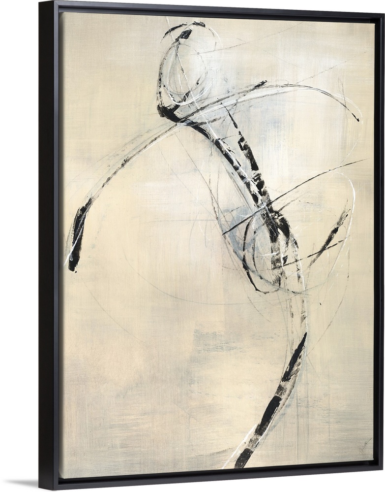 <p>Contemporary abstract painting using neutral tones and bold sketchy lines resembling a human form.</p>