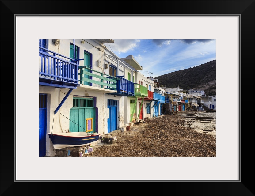 <p>Syrmata, traditional fishermen's encampments with brightly painted woodwork, fishing village of Klima, Milos, Cyclades, Greek Islands, Greece</p>