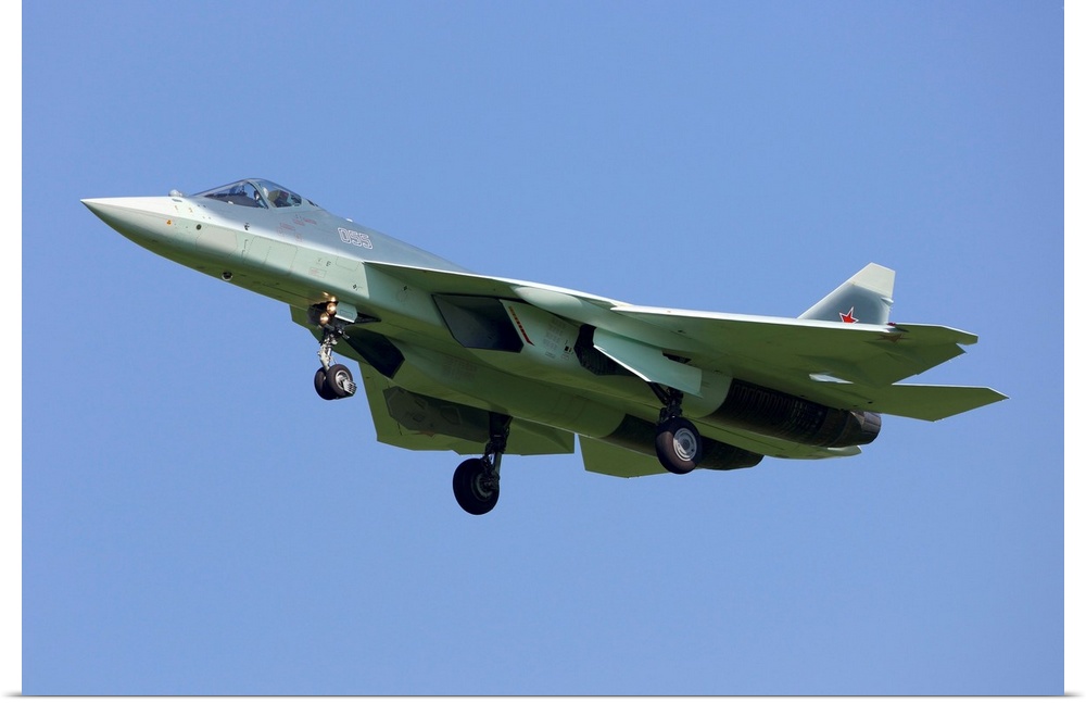 <p>T-50 PAK-FA fifth generation Russian jet fighter landing</p>