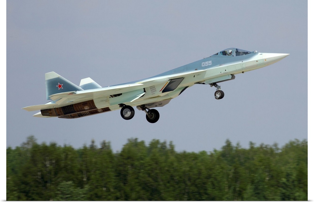 <p>T-50 PAK-FA fifth generation Russian jet fighter taking off.</p>