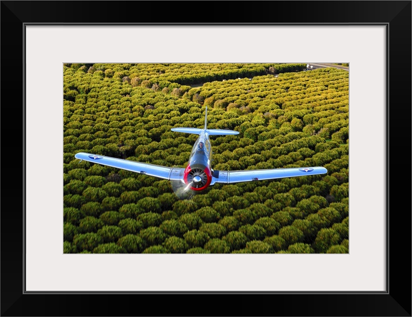 <p>A North American T-6 Texan makes a pass over Arizona Orange Groves.</p>