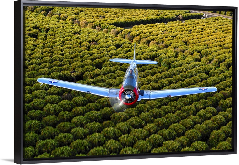 <p>A North American T-6 Texan makes a pass over Arizona Orange Groves.</p>
