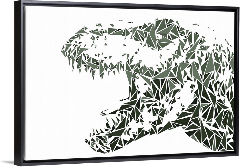 <p>A Tyrannosaurus Rex made up of triangular geometric shapes.</p>