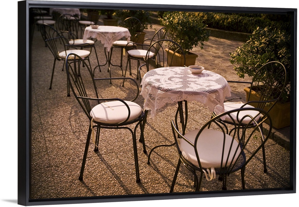 <p>Tables are set at an outdoor bistro in Italy</p>