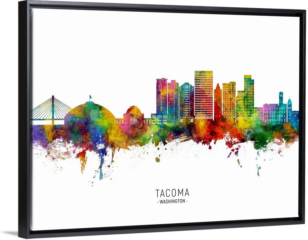 <p>Watercolor art print of the skyline of Tacoma, Washington, United States</p>