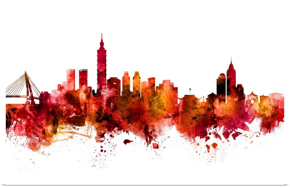 <p>Watercolor art print of the skyline of Taipei, Taiwan.</p>