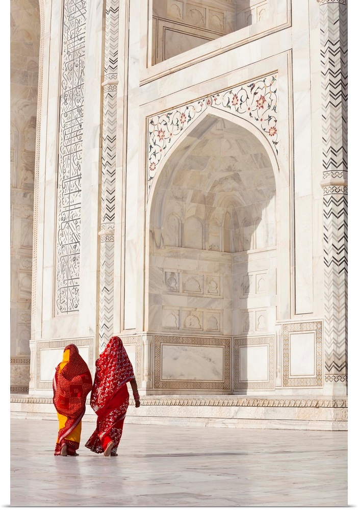 <p>Taj Mahal, UNESCO World Heritage Site, Women in colourful Saris, Agra, Uttar Pradesh state, India, Asia, (MR)</p>