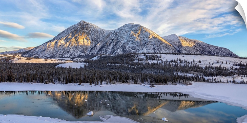 <p>Late winter afternoon light warms up the mountains along the Takhini River, near Whitehorse. Yukon, Canada.</p>