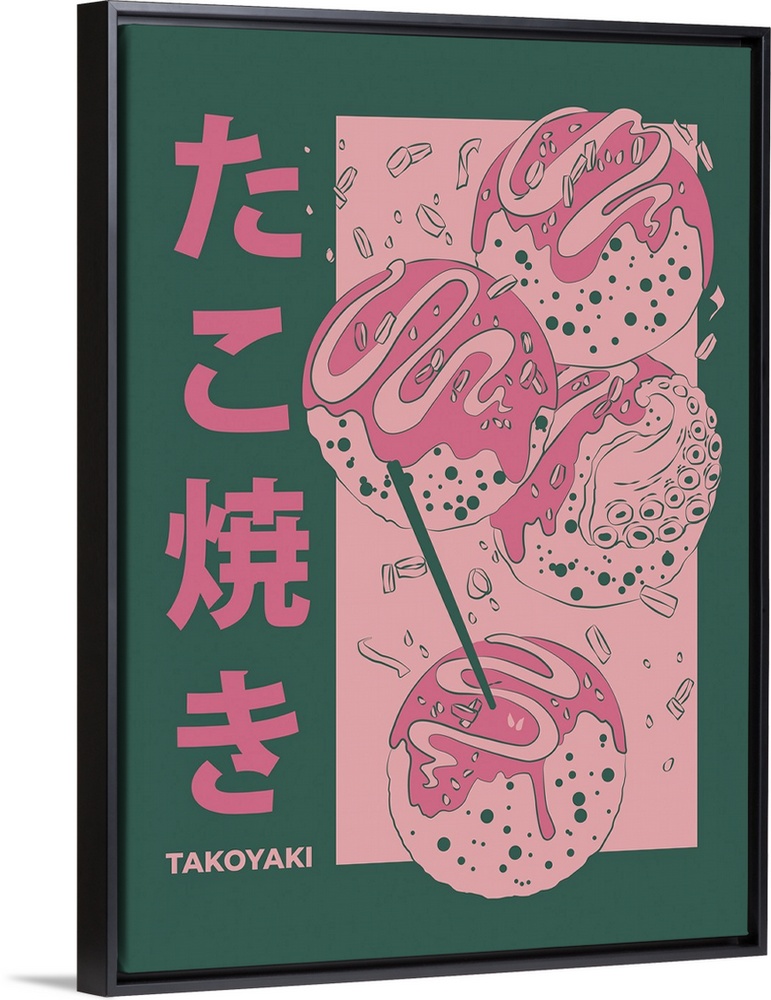 <p>Watercolor illustration of a traditional Japanese snack called takoyaki.</p>
