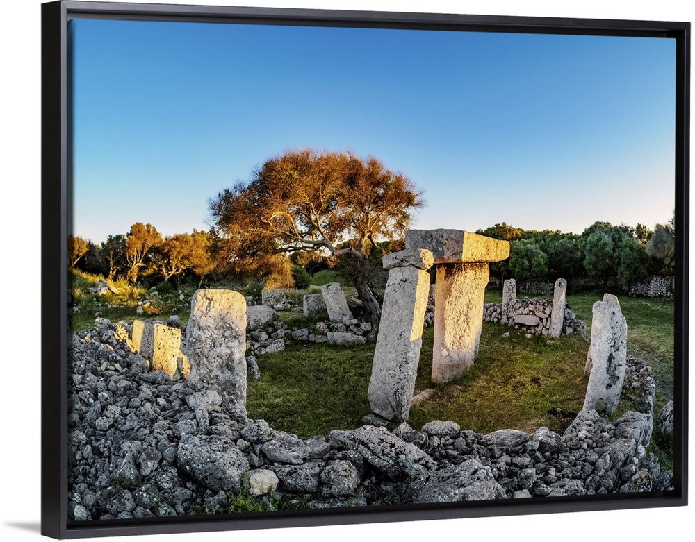 <p>Taula at sunset, Talati de Dalt archaeological site, Menorca (Minorca), Balearic Islands, Spain, Mediterranean, Europe</p>