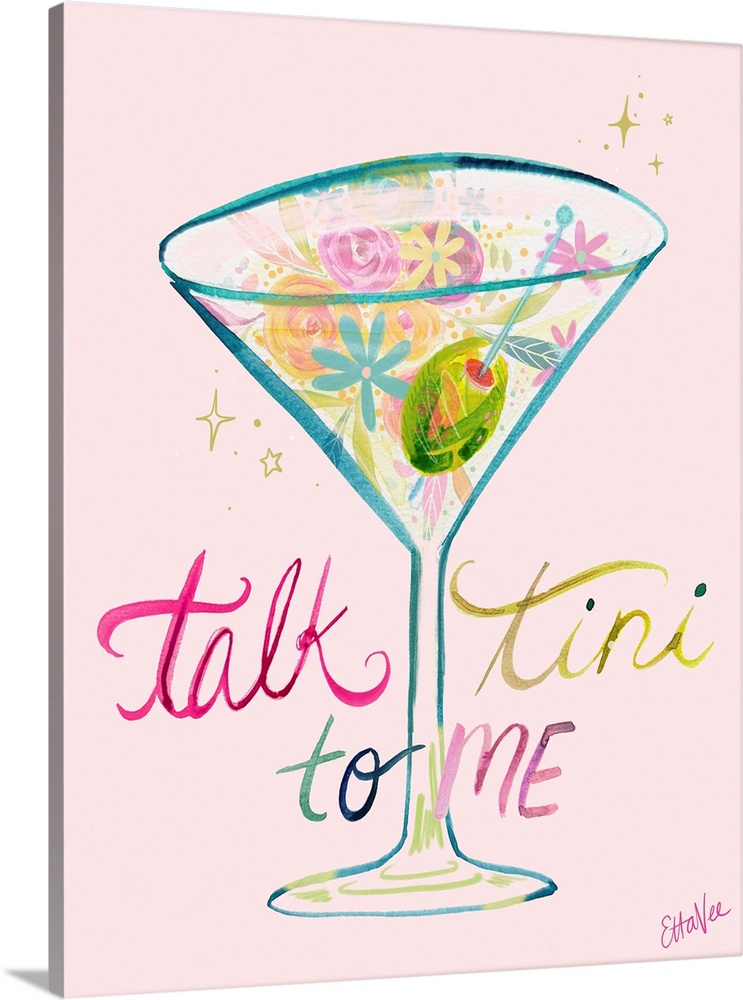 Art EttaVee Art Bar Decorative Art Food and Drink Drinks Cocktails Painting Pink Wall Art