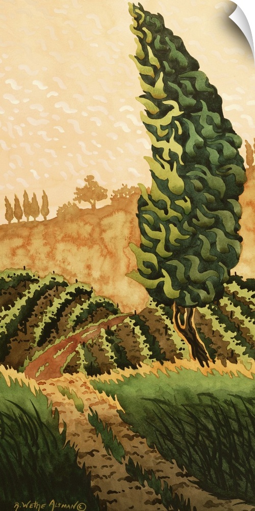 Robin Altman Art Trees Decorative Art Landscapes Trees Vineyard Painting Italy Tuscany