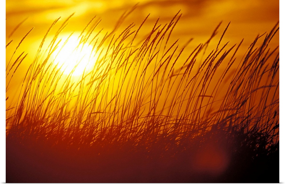 <p>Tall Grass Backlit by Sunset, Autumn Silhouette in Alaska, wind blowing the blades to the right.</p>