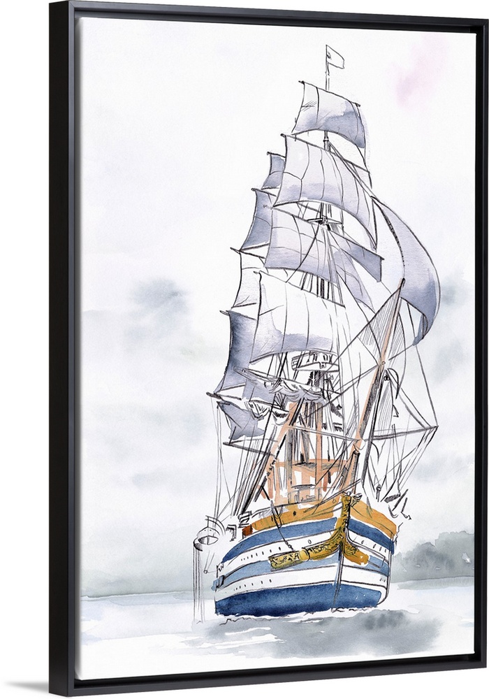 Art Decorative Art Drawing Illustrations Man Cave Wall Art Jennifer Paxton Parker Transportation Boat Ship Watercolor