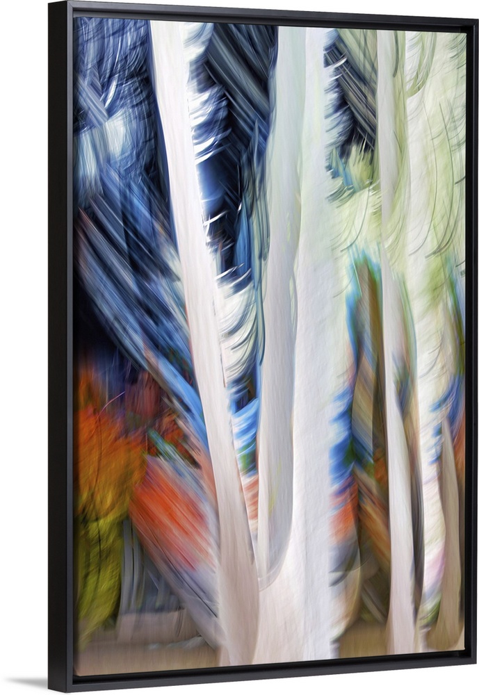<p>An ICM (Intentional Camera Movement) image of a group of tall cedars in a small town in British Columbia, Canada. The tree trunks are almost black in reality, but were converted to the opposite almost white in post-processing. The colours behind the cedar trunks are other trees, a few buildings, and the blue sky. Ursula Abresch Abstract Trees Collection.</p>