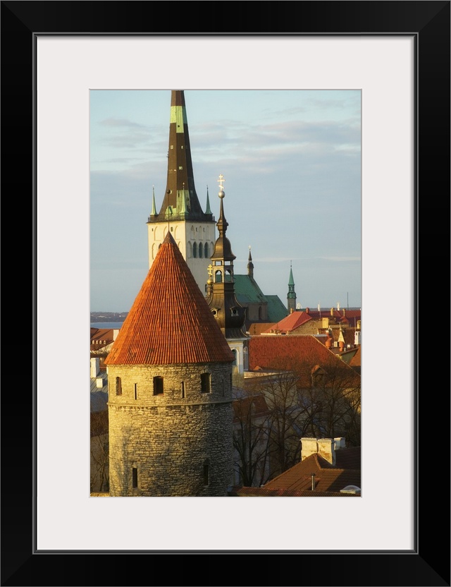 <p>Tallinn cityscape dominated by St. Olaf's Church and city wall towers, Estonia</p>