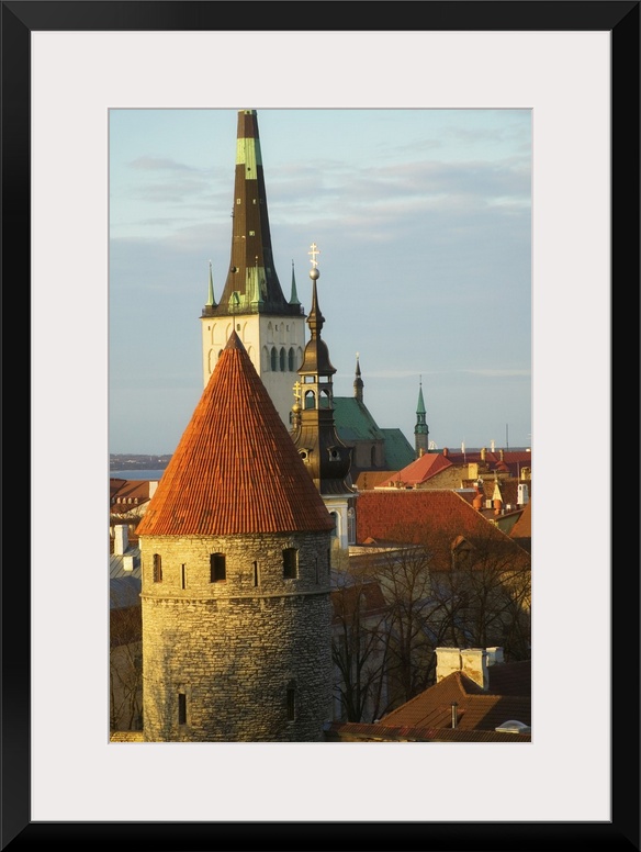 <p>Tallinn cityscape dominated by St. Olaf's Church and city wall towers, Estonia</p>