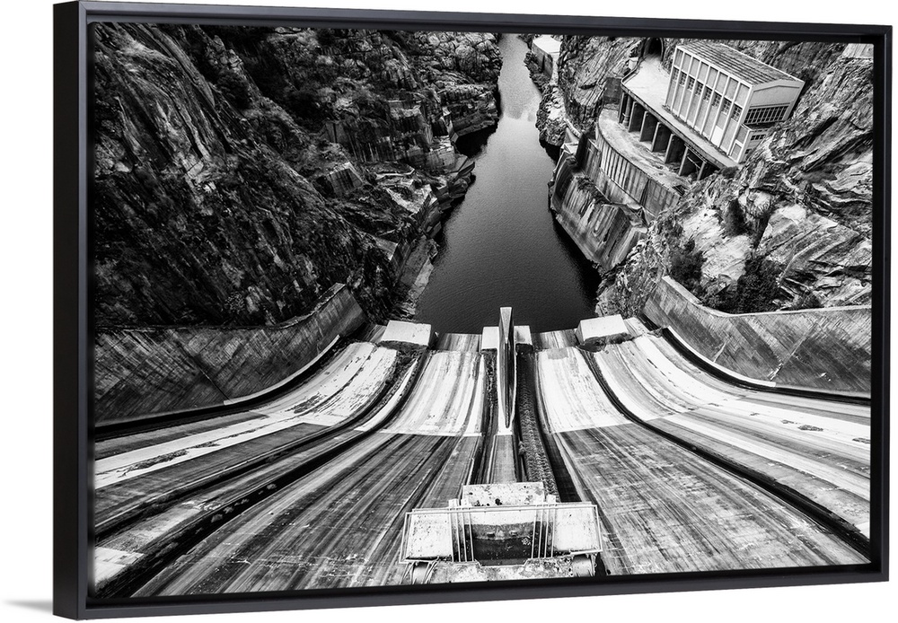<p>Looking down the slope of the Picote dam toward the river gorge, Portugal.</p>