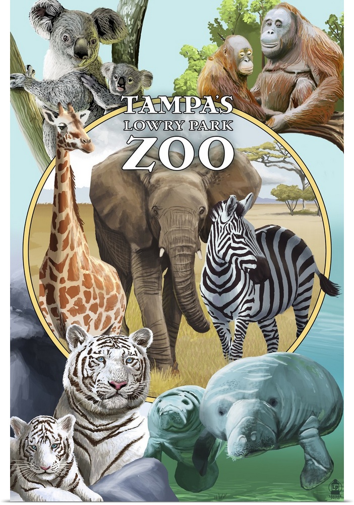 Art Lantern Press Florida Wildlife Elephant Giraffe Manatee Tiger Zebra
