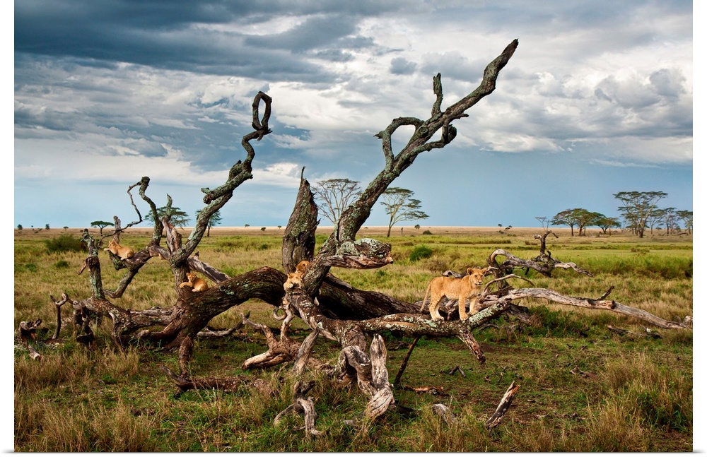 <p>Tanzania, Serengeti National Park, A lion Pride on a tree in the Serengeti near Seronera.</p>