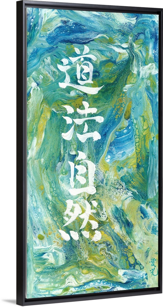 <p>Abstract art with Taoist quote written in Chinese calligraphy. This is a quote from Tao Te Ching (Dao De Jing) Chapter 25 by Lao Tzu: 'Man follows the earth, The earth follows the heavens, The heavens follows the Tao, The Tao follows nature.'</p>