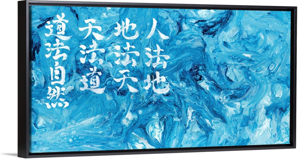 <p>Abstract art with Taoist calligraphy in Chinese. This is a quote from Tao Te Ching (Dao De Jing) Chapter 25 by Lao Tzu: ?Man follows the laws of Earth, Earth follows the laws of Heaven, Heaven follows the laws of Tao, Tao follows the laws of Nature?</p>